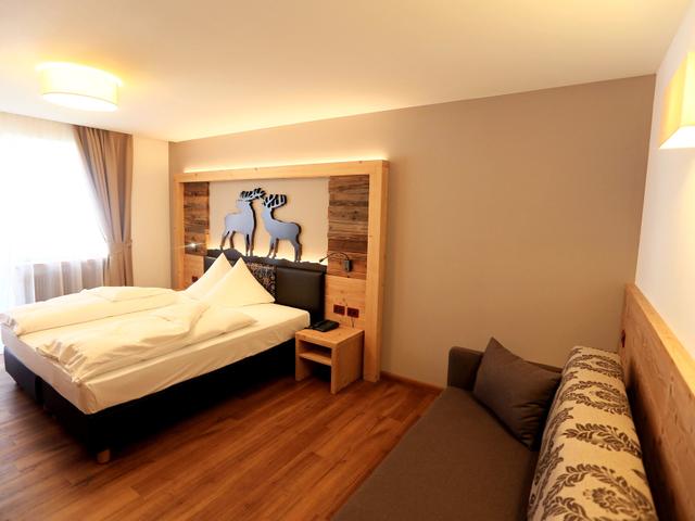 4-hengen huone, jossa parivuode ja lisävuoteet, kylpy/suihku ja WC. Joissakin huoneissa erilliset parveke.