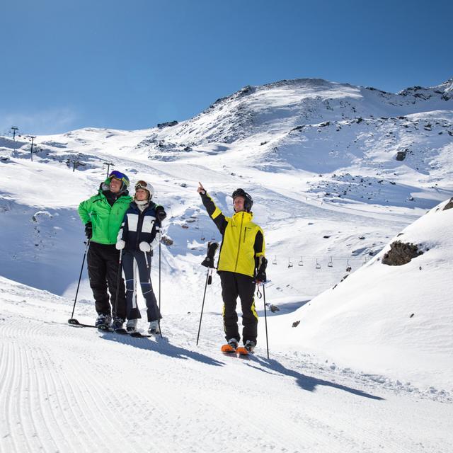 Hiihtokoulusta voi varata yksityistunteja tai ryhmätunteja valitsemaksesi tuntimääräksi. Vaihtoehtona on ryhmäopetus englanniksi, joka sisältää kolmen tunnin opetusjakson iltapäivisin 6 tai 5 päivänä. Voit myös varata jopa yksityistunteja offpist-lasketteluun, freestyleen ja hyppykouluun. Perheen pienimmät (12 ikävuoteen asti) voivat osallistua lasten hiihtokouluun, joka kestää viisi päivää. Niille jotka haluavat on mahdollisuus osallistua lapsikerhoon laskettelupäivän jälkeen. Aukioloajat: klo 08.30-18.00 joka päivä.