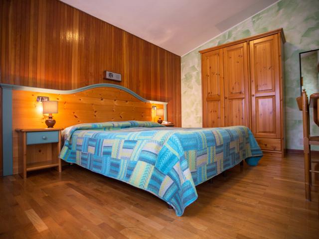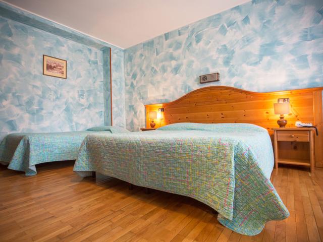Perhehuone, jaettuna kahteen huoneeseen jossa parivuode ja lisävuoteilla, jossa kylpy/suihku ja WC.