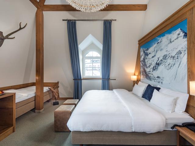 4-hengen huone, jossa parivuode ja kerrossänky. Kylpy/suihku ja kaksi WC:tä.