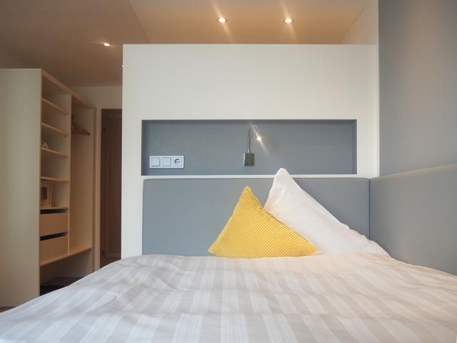 2-3 hengen huone lisävuoteella, kylpy/suihku ja WC. Joissakin huoneissa erilliset parveke.