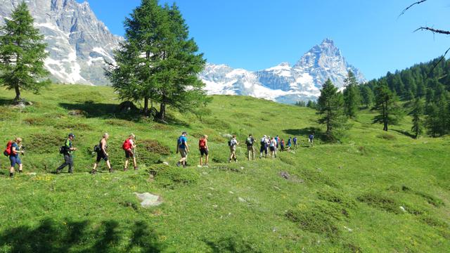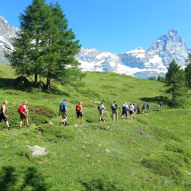 Hike & Ski tarjoaa kolme päivää vaellusta, yhden päivän kesälaskettelua ja mahdollisuuden tutustua Cerviniaan omatoimisesti. Vaellukset ovat keskivaikeusasteisia, joka on samanlaisia kuin suosituin vaellustyyppimme Alppivaellus, ja kävelemme 8–14 km ja 400–800 korkeusmetriä päivässä. Yhdessä omien ja paikallisten oppaiden kanssa koemme postikorttimaisia alueita vaeltaessamme pitkin kristallinkirkkaita alppijärven rantoja, rauhallisia metsiä ja koskematonta luontoa. Pysähdymme joka päivä nauttimaan ihanasta yhteisestä lounaasta tai piknikistä vuorilla, ja retket päättyvät Cerviniaan ansaituun "Afterwalkiin" ennen illallista.
