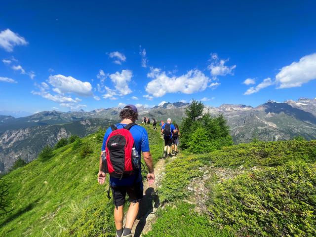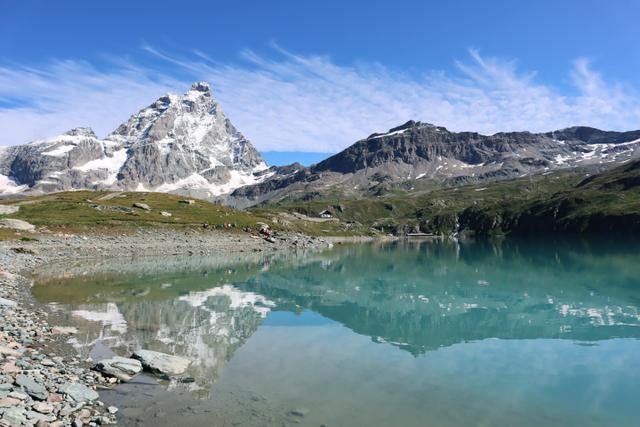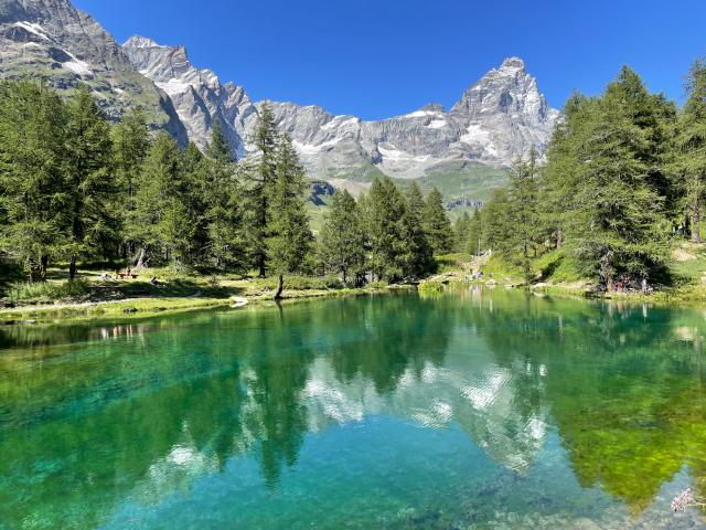 Aloitamme päivän nousemalla hissillä Plan Maisoniin, jossa kävelemme alppijärvelle nimeltä Lago Cime Bianche, joka on päivän korkein kohta (2850 m mpy.). Sieltä meillä on ainutlaatuinen näkymä majesteettiselle Matterhornille ja kolme kilometriä pitkälle Grand Muraillesin vuoristoketjulle, jota kutsutaan myös "Suureksi muuriksi". Turkoosinsininen järvi luo vaikuttavia kontrasteja korkeita vuoria ja vihreitä laaksoja vasten. Istuudumme ja nautimme mukaan pakatusta piknikistämme ennen kuin aloitamme vaelluksen alas. Palattuamme kylään, on aikaa ihanalle aperitiiville auringossa.