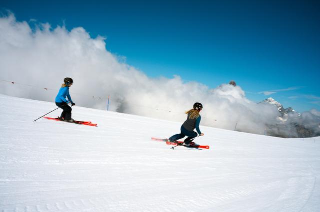 Tänään on ohjelmassa kesälaskettelua! Aamiaisen jälkeen nousemme kylästä hissillä aina Plateau Rosán jäätikölle (3500 m mpy.). Hissimatka kestää noin 45 minuuttia ja tarjoaa upeat näkymät. Huipulle päästyämme teemme ensimmäiset käännöksemme, ja täällä on yhteensä 20 km rinteitä, 7 hissiä ja funpark. Ylähissi on auki klo 13.00 asti, jonka jälkeen lähdemme taas takaisin Cerviniaan. Iltapäivällä on runsaasti aikaa patikoida, pyöräillä, pelata golfia tai tutustua ympäristöön muuten omatoimisesti.